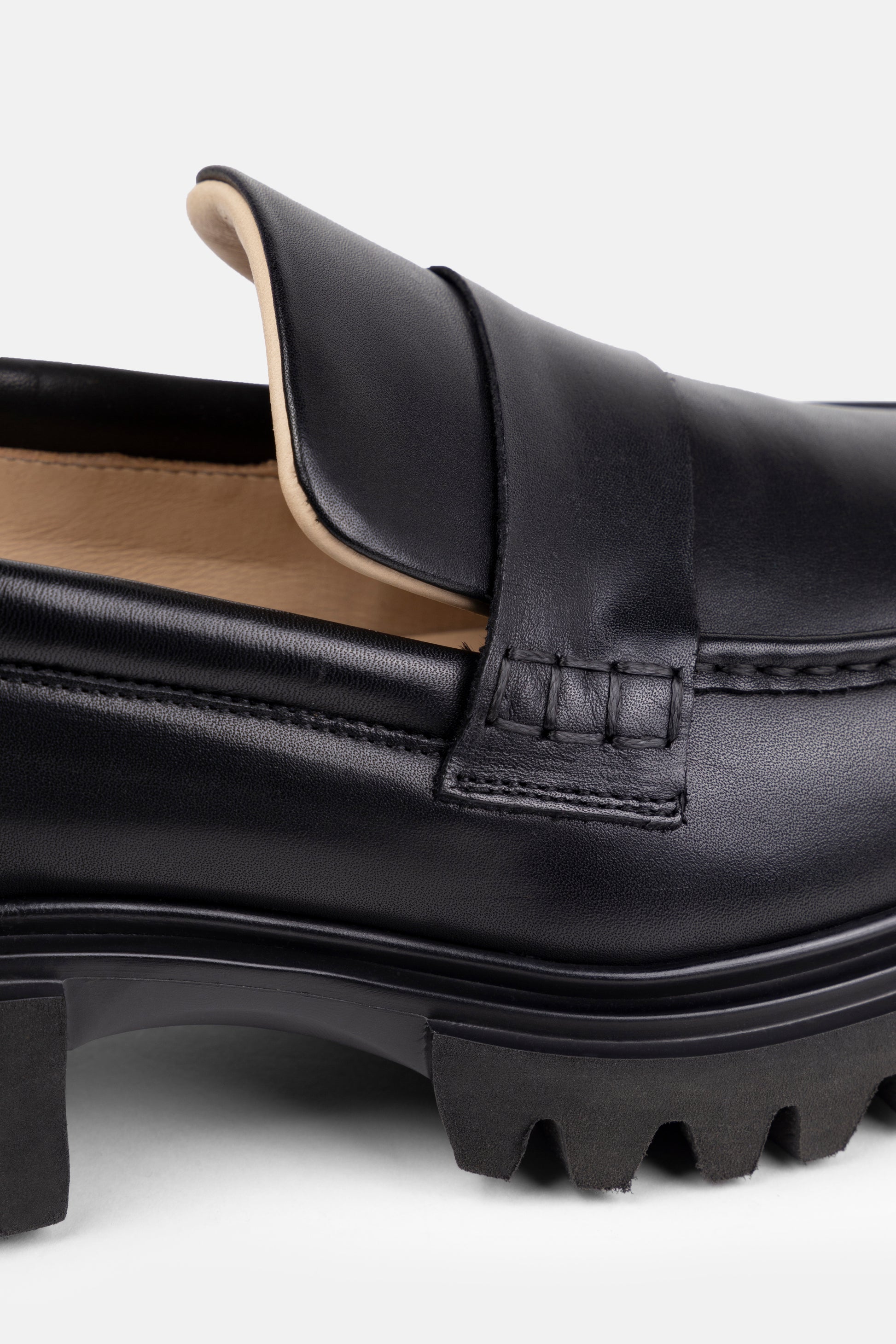 Loafer with padded details and a pronounced nose, The big chunky outsole finishes the look,